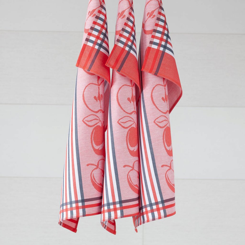 Bavlněné utěrky se vzorem JABLKA červenošedá