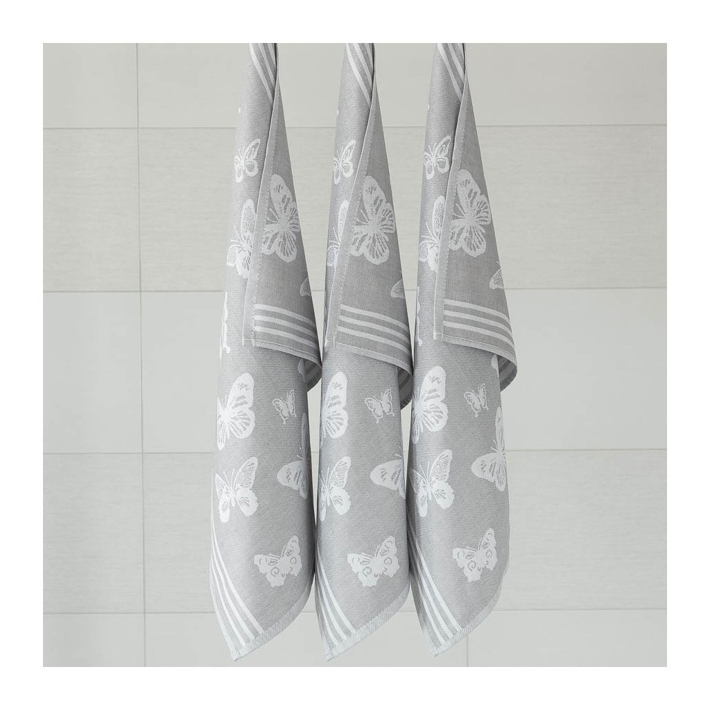 Bavlněné utěrky se vzorem MOTÝLCI šedá
