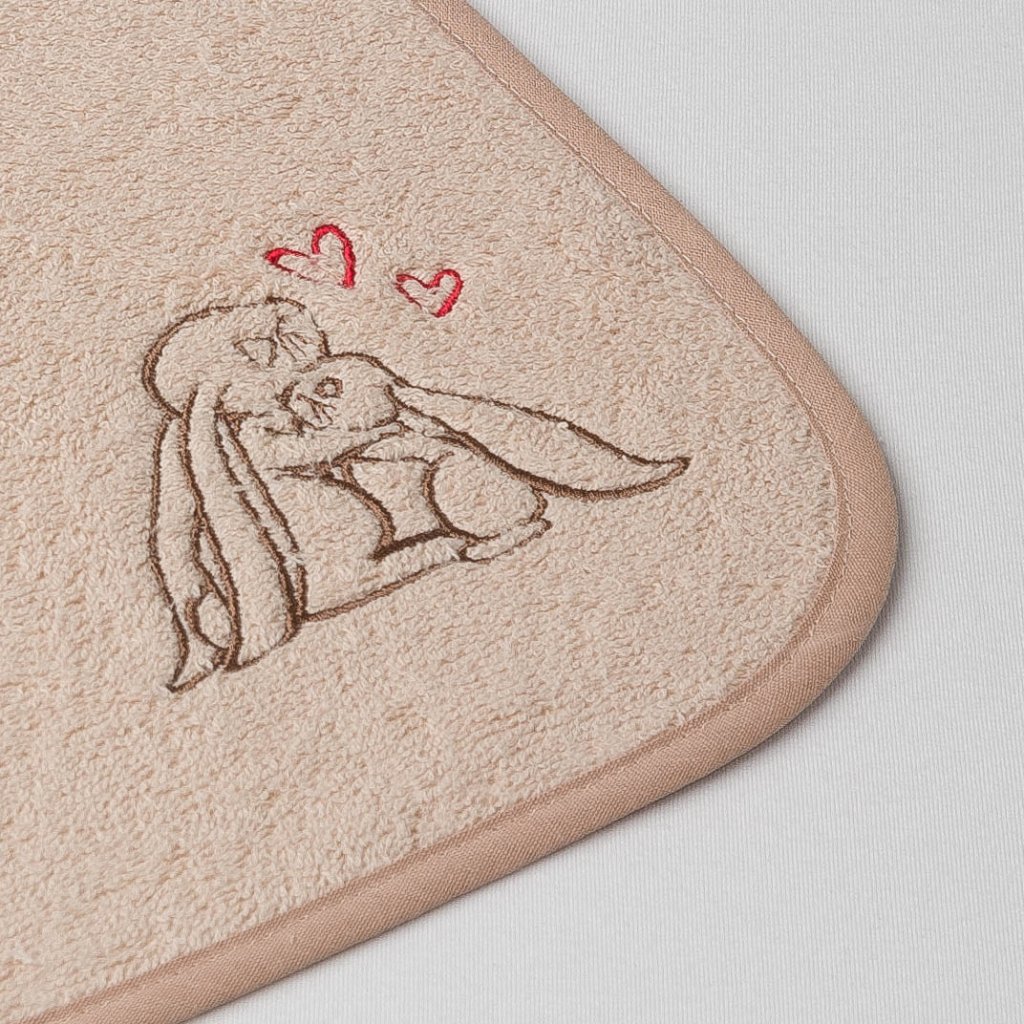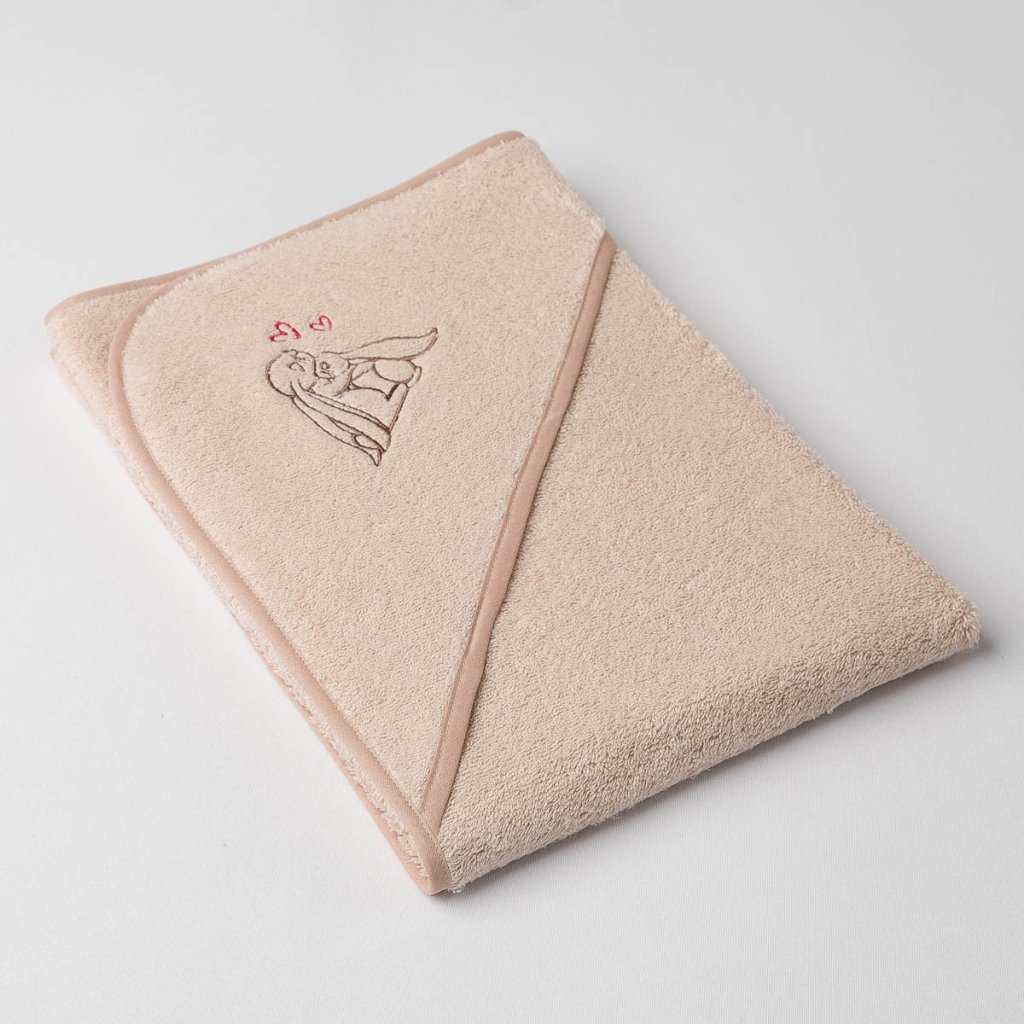 Dětská osuška Veba LOTA s kapucí béžová s výšivkou Zajíček mazlíček béžová lemovka