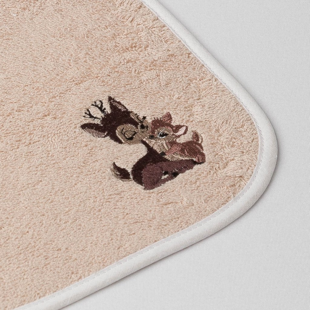 Dětská osuška Veba LOTA s kapucí béžovo/bílá s výšivkou Kamarádi z lesa bílá lemovka
