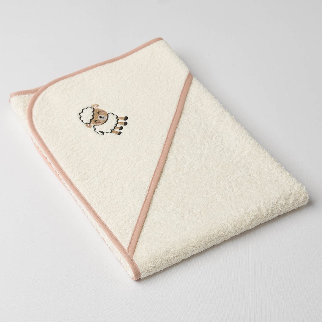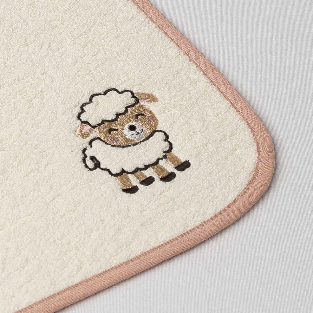 Dětská osuška Veba LOTA s kapucí jasmínová s výšivkou Huňatý beránek béžová lemovka