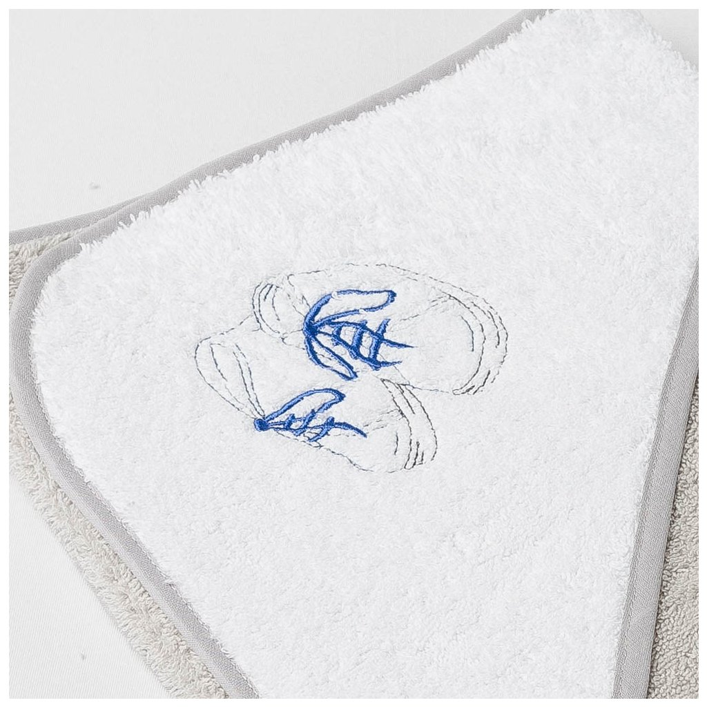 Dětská osuška Veba LOTA s kapucí světle šedobílá s výšivkou První krůčky šedá lemovka