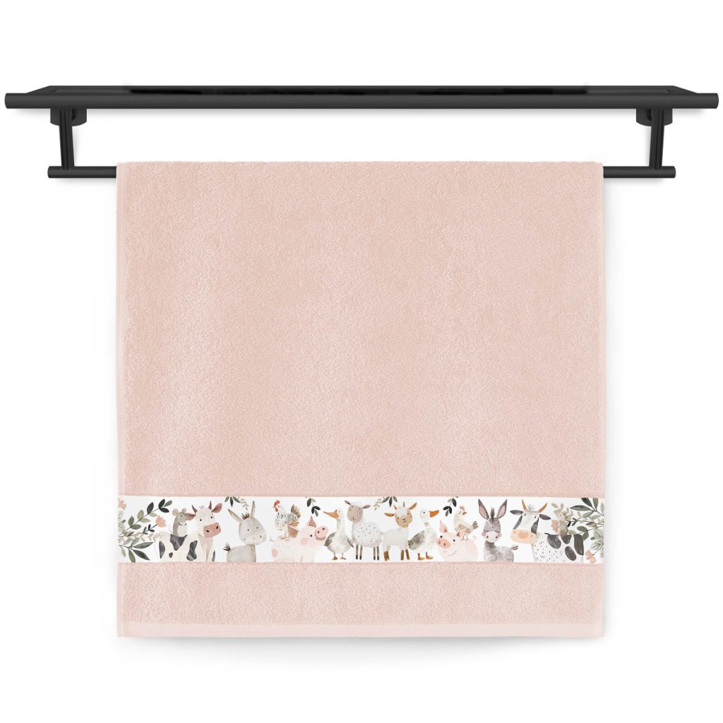 Vneste do koupelny radost a hravost s tímto kouzelným ručníkem, který si zamilují malí milovníci zvířátek! Akvarelový vzor zachycuje roztomilé obyvatele farmy – kravičky, prasátka, ovečky, kozy, husy, kohouta i oslíky – v jemných přírodních tónech, doplněných o něžné květinové a listové prvkyIdeální pro každodenní použití i jako veselý dárek pro malé farmáře!