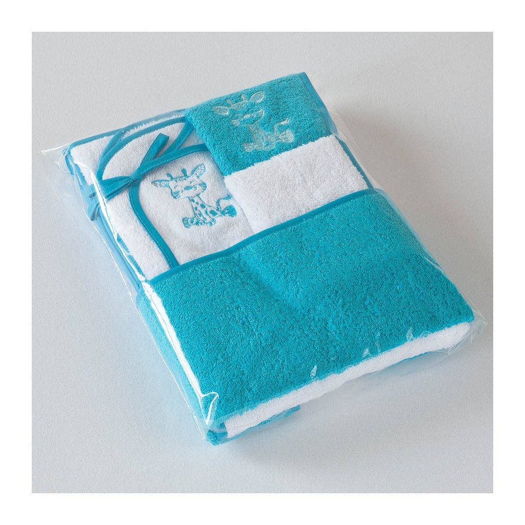 Bohatý dětský set BABY z měkkého a savého froté s výšivkou a barevnou lemovkou.