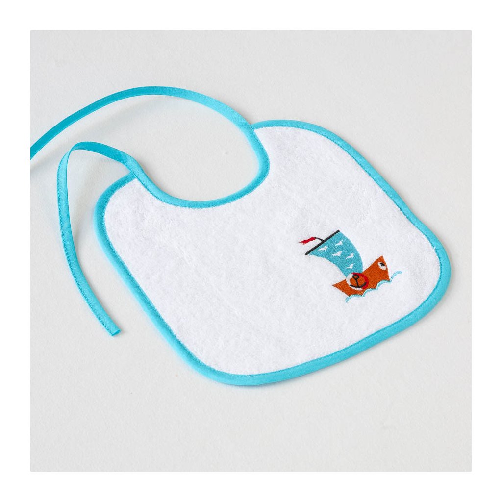 Roztomilá loďka na froté slintáčku s barevnou lemovkou.