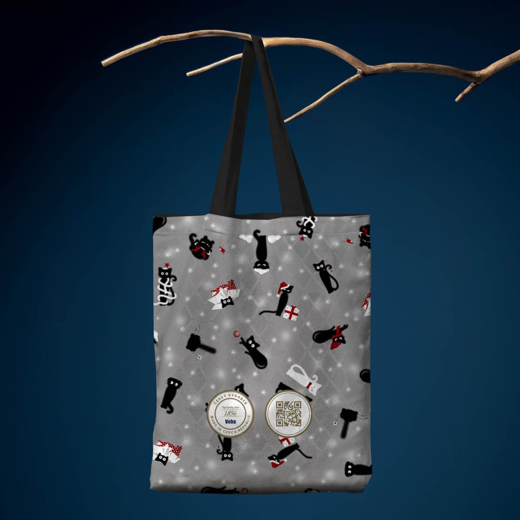 Látková taška Veba GARBO tisk Vánoční kočičí patálie