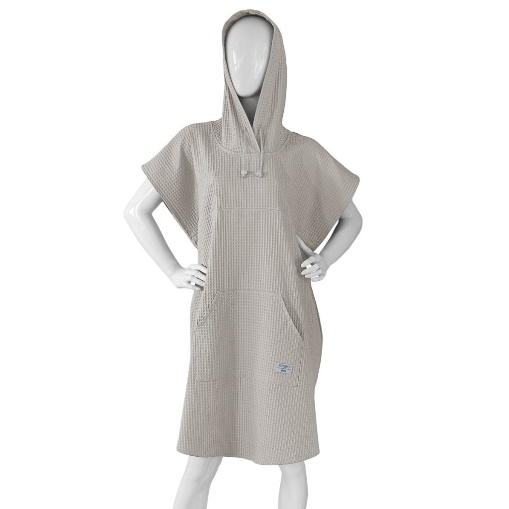 Dopřejte si pohodlí a styl s naším županovým pončem z vafle! Vyrobeno z měkké a savé 100% bavlny, toto pončo vás zahřeje a osuší v mžiku. Díky volnému střihu a pohodlnému kapuci je ideální pro lenošení doma nebo po dni stráveném u bazénu či na pláži.