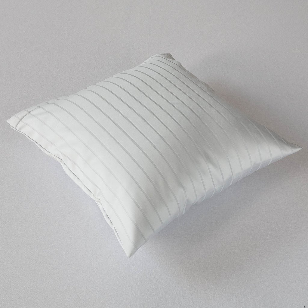 Luxusní damaškové povlaky na polštáře CARMINE v jemných, zdánlivě jednoduchých proužcích 18 / 2 mm, které podporují luxusní vzhled výrobku.