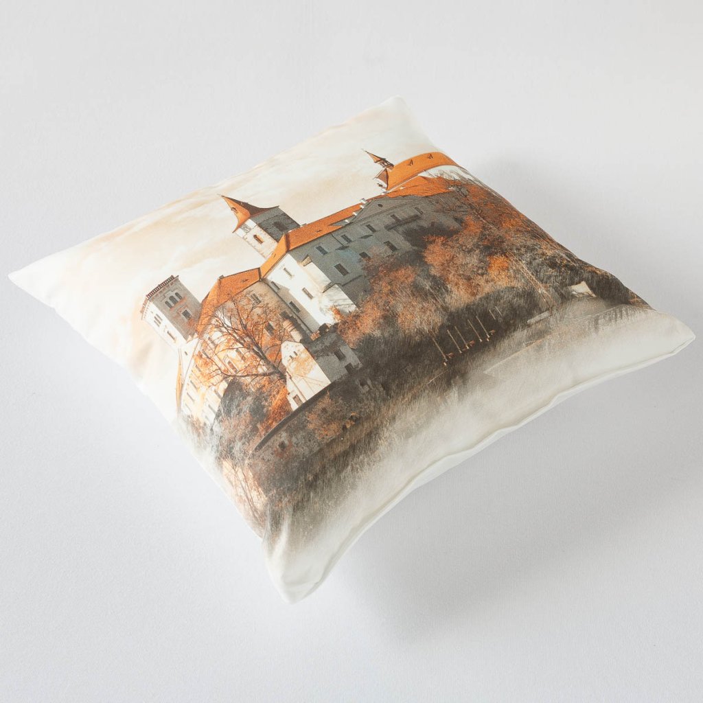 Dekorační povlak na polštářek s digitálním tiskem přináší na bílém podkladu pohled na klášter Sázava – místo, kde se snoubí historie, klid a duch starých časů. Jemné tóny a realistické zobrazení vytvářejí dojem malovaného obrazu, který vynikne v každém interiéru.