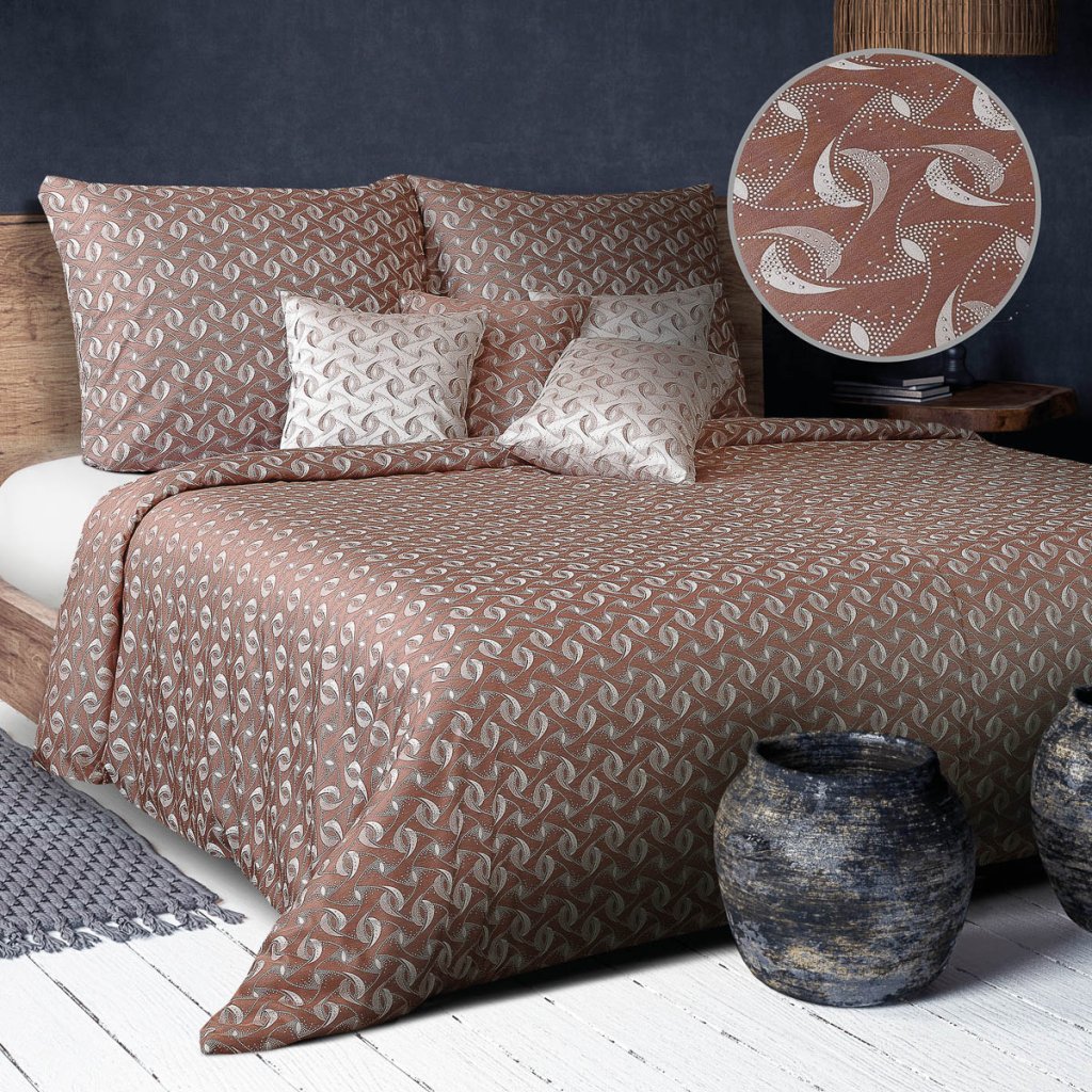Ložní povlečení Vánek přináší do ložnice eleganci a lehkost přírody. Na povrchu se vlní stylizované lístky, které propojují jemné oblouky a drobné perličkové tečky – jako by se po látce rozprostíral jemný tanec vánku. Vzájemně proplétané křivky vytvářejí harmonický a luxusní efekt, který zútulní prostor a dodá mu pocit klidu. Damašková vazba navíc podtrhuje krásu motivu a hraje si s odrazy světla díky jemnému kontrastu lesku a matu.