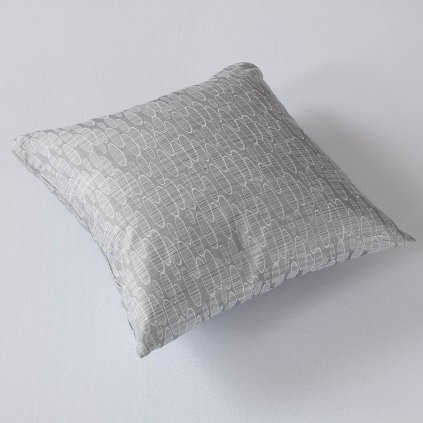 Ložní povlečení je šité v kombinaci menšího a většího vzoru oblázků. Polštář je šitý v menším vzoru oblázků a přikrývka ve větším vzoru oblázků.