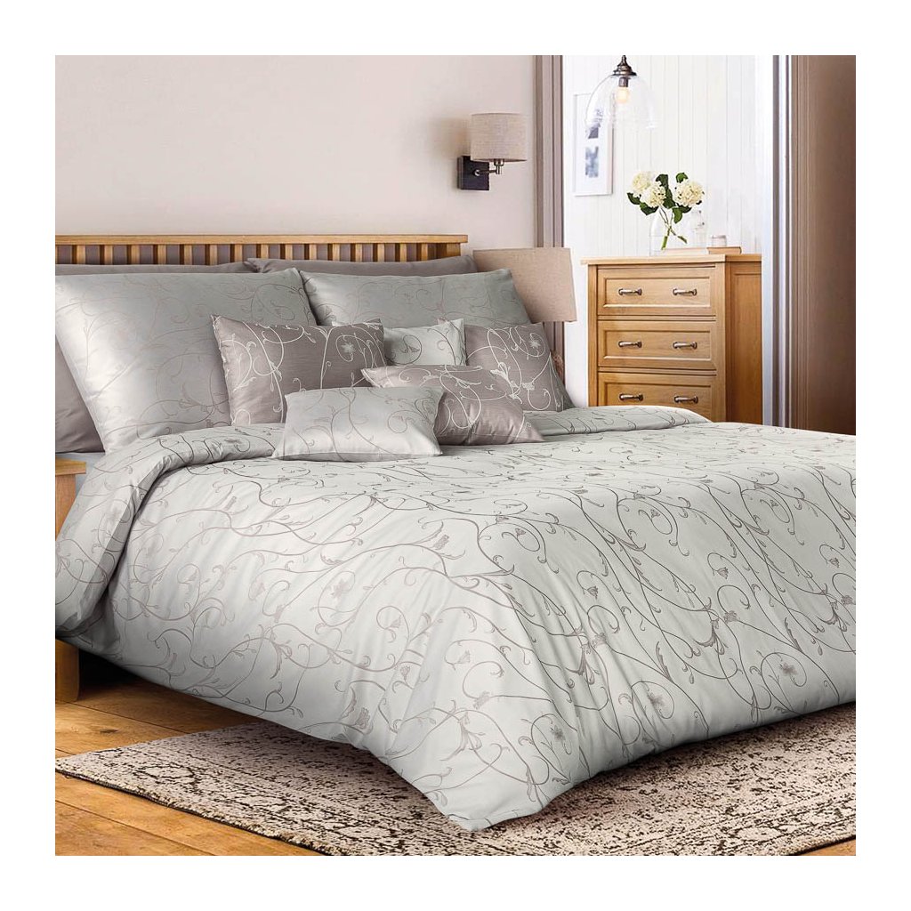 Povlečení Veba ORNELLA Floral dance stříbrno-hnědá