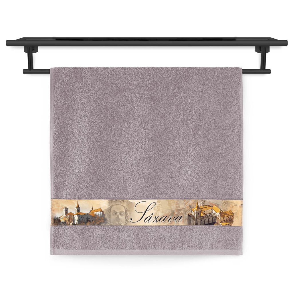 Ručník Veba NORA tisk město Sázava hnědošedá