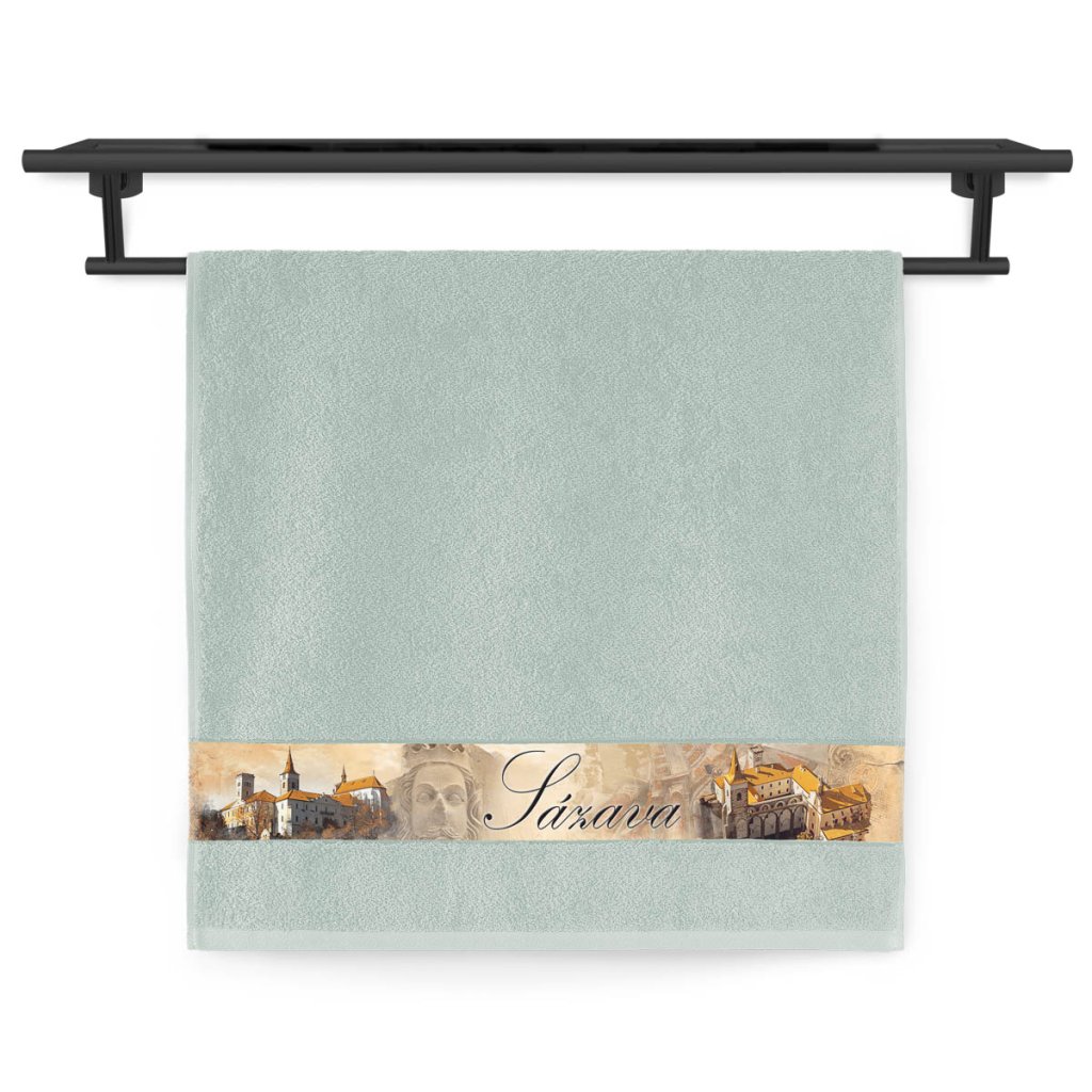 Ručník Veba NORA tisk město Sázava zelenošedá