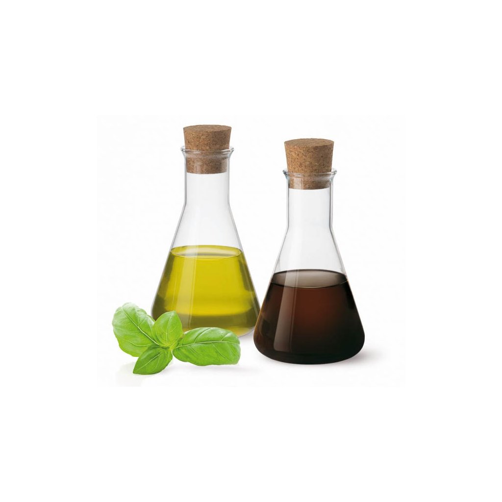 Souprava 2 ks lahviček na olej a ocet o objemu 100 ml. Baleno v barevné kartonové krabičce.