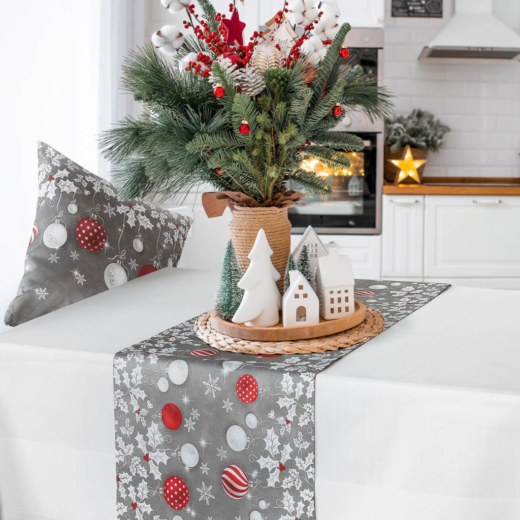 Vytvořte nezapomenutelnou vánoční atmosféru ve vašem domově s elegantním ubrusovým běhounem "Vánoční cesmína".