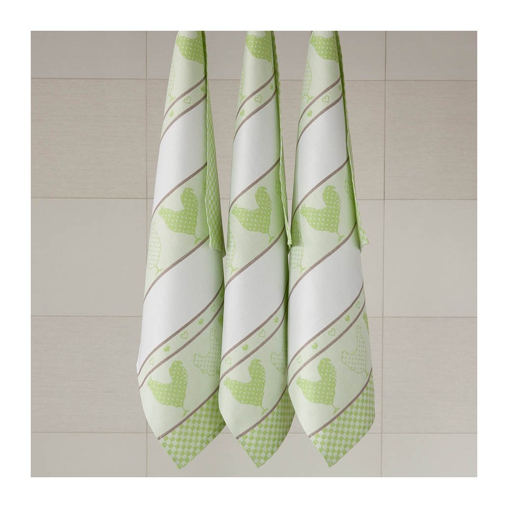 Bavlněné utěrky se vzorem SLEPIČKY zelená