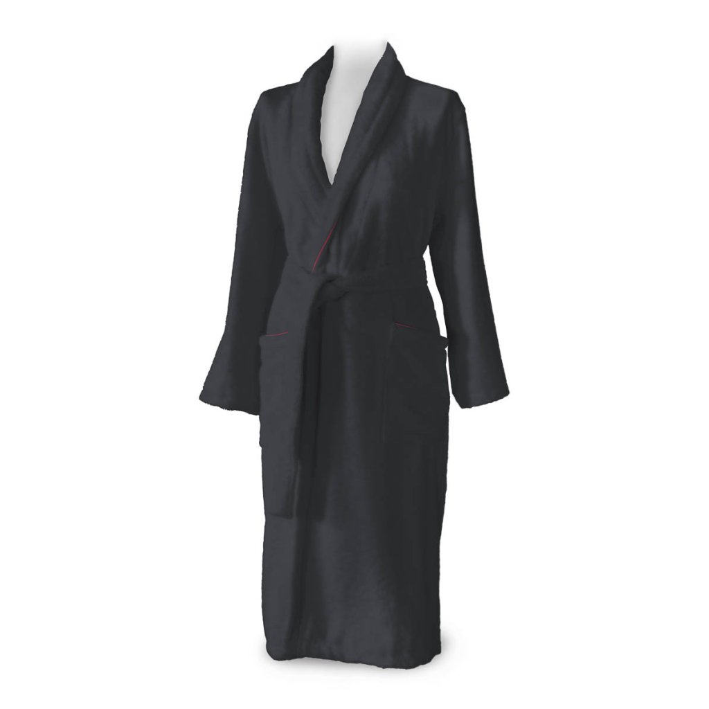 Oblíbený dámský froté župan se šálovým límcem doplněný saténovou výpustkou.